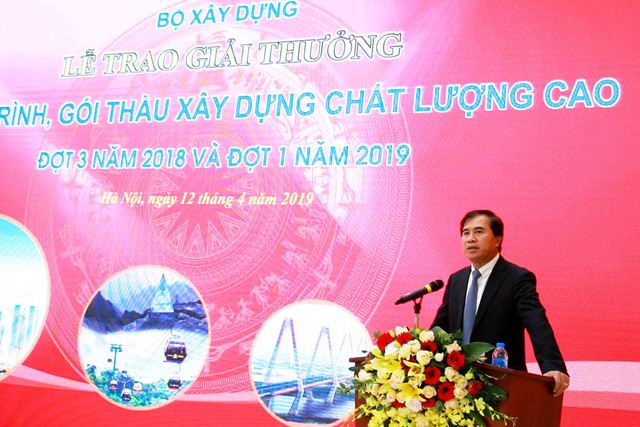 Ngày 12/4/2019, tại Hà Nội, Bộ Xây dựng tổ chức Lễ trao Giải thưởng công trình, gói thầu xây dựng chất lượng cao đợt 3 năm 2018 và đợt 1 năm 2019. Tham dự buổi Lễ có Thứ trưởng Lê Quang Hùng - Chủ tịch Hội đồng xét thưởng; Chủ tịch CĐXD Việt Nam Nguyễn Thị Thủy Lệ; Cục trưởng Cục Giám định nhà nước về chất lượng công trình xây dựng Phạm Minh Hà - Phó Chủ tịch Hội đồng xét thưởng.