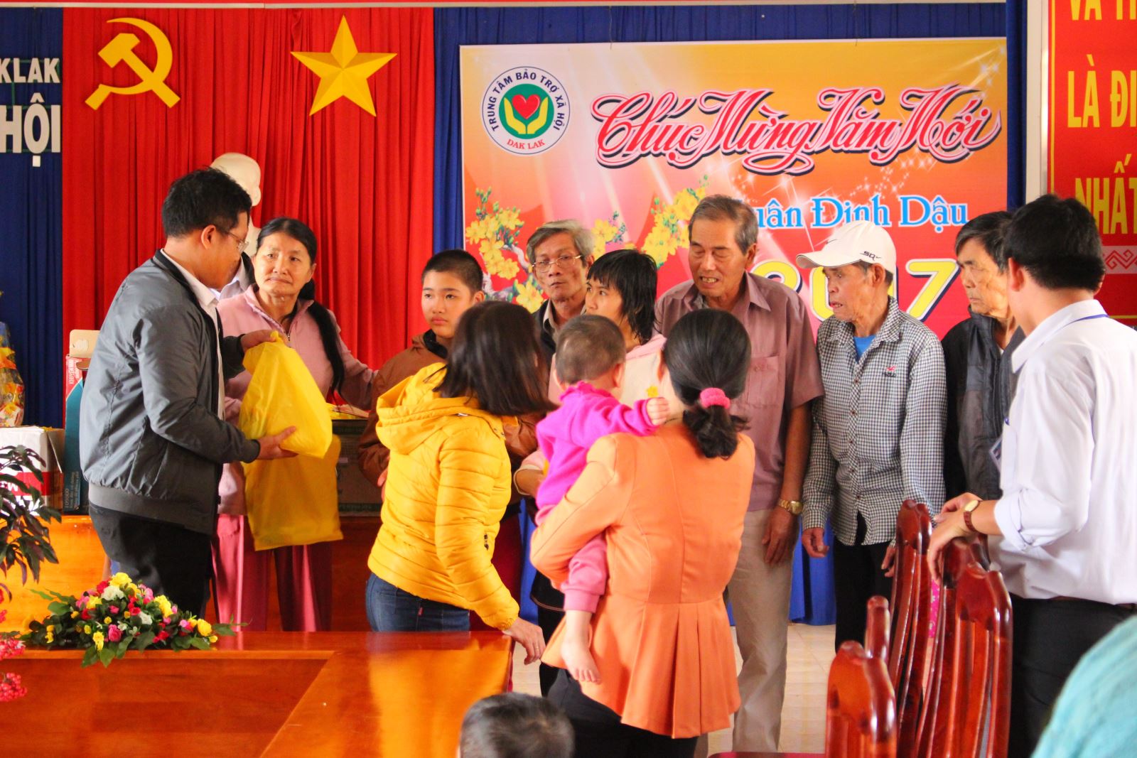 Đ/c Nguyễn Thành Tâm – Phó bí thư Chi đoàn TAND tỉnh Đắk Lắk tặng quà cho các đối tượng đang được bảo trợ tại Trung tâm.