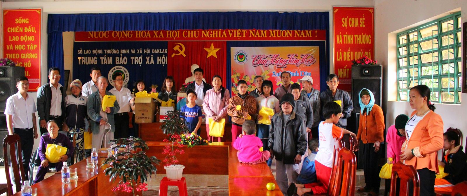 Đoàn viên thanh niên trong Chi đoàn TAND tỉnh Đắk Lắk đến thăm hỏi, chúc tết và tặng quà cho các đối tượng đang được bảo trợ tại Trung tâm