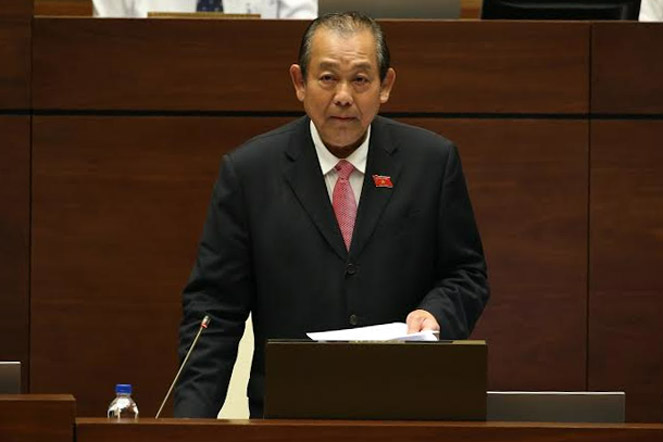Chiều 15/6, Phó Thủ tướng Thường trực Chính phủ Trương Hòa Bình trả lời chất vấn trước Quốc hội về những vấn đề liên quan thuộc trách nhiệm của Chính phủ.