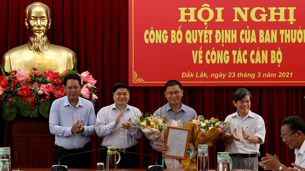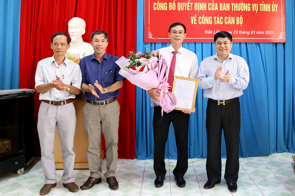 Chiều 23/3, Ban Thường vụ Tỉnh ủy tổ chức Lễ công bố các quyết định về công tác cán bộ tại Văn phòng Tỉnh ủy, Ban Tổ chức Tỉnh ủy và Báo Đắk Lắk. Dự lễ công bố có Phó Bí thư Thường trực Tỉnh ủy Phạm Minh Tấn; lãnh đạo Văn Phòng Tỉnh ủy; các Ban của Tỉnh ủy và tập thể cán bộ, công chức, viên chức, người lao động các đơn vị.