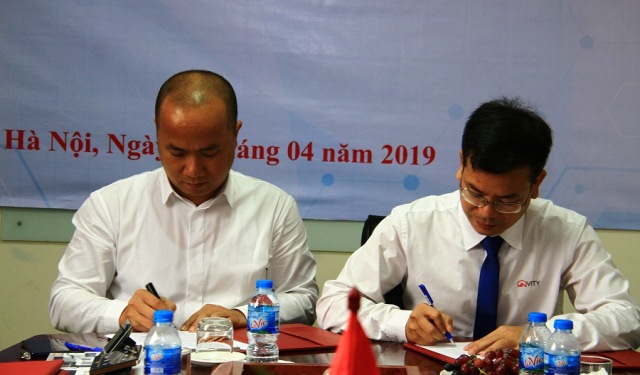 Ông Đào Văn Duy (trái) - TGĐ VIID và ông Bùi Hữu Long (phải) - TGĐ Vietek cùng nhau ký kết hợp tác phát triển sản phẩm công nghệ cao.
