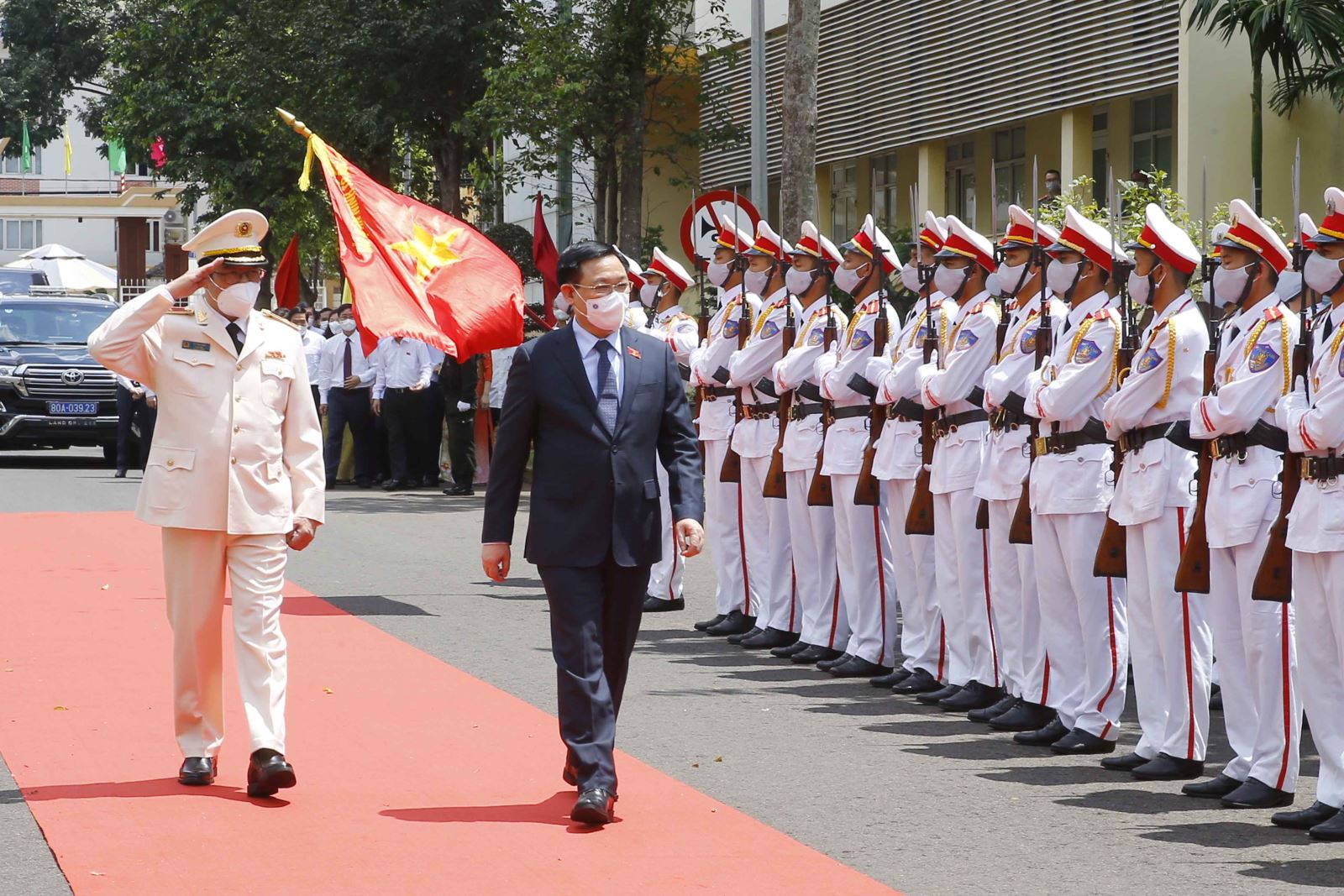 Chủ tịch Quốc hội Vương Đình Huệ thăm và làm việc với Công an tỉnh Đắk Lắk. Ảnh: VGP/Thành Chung