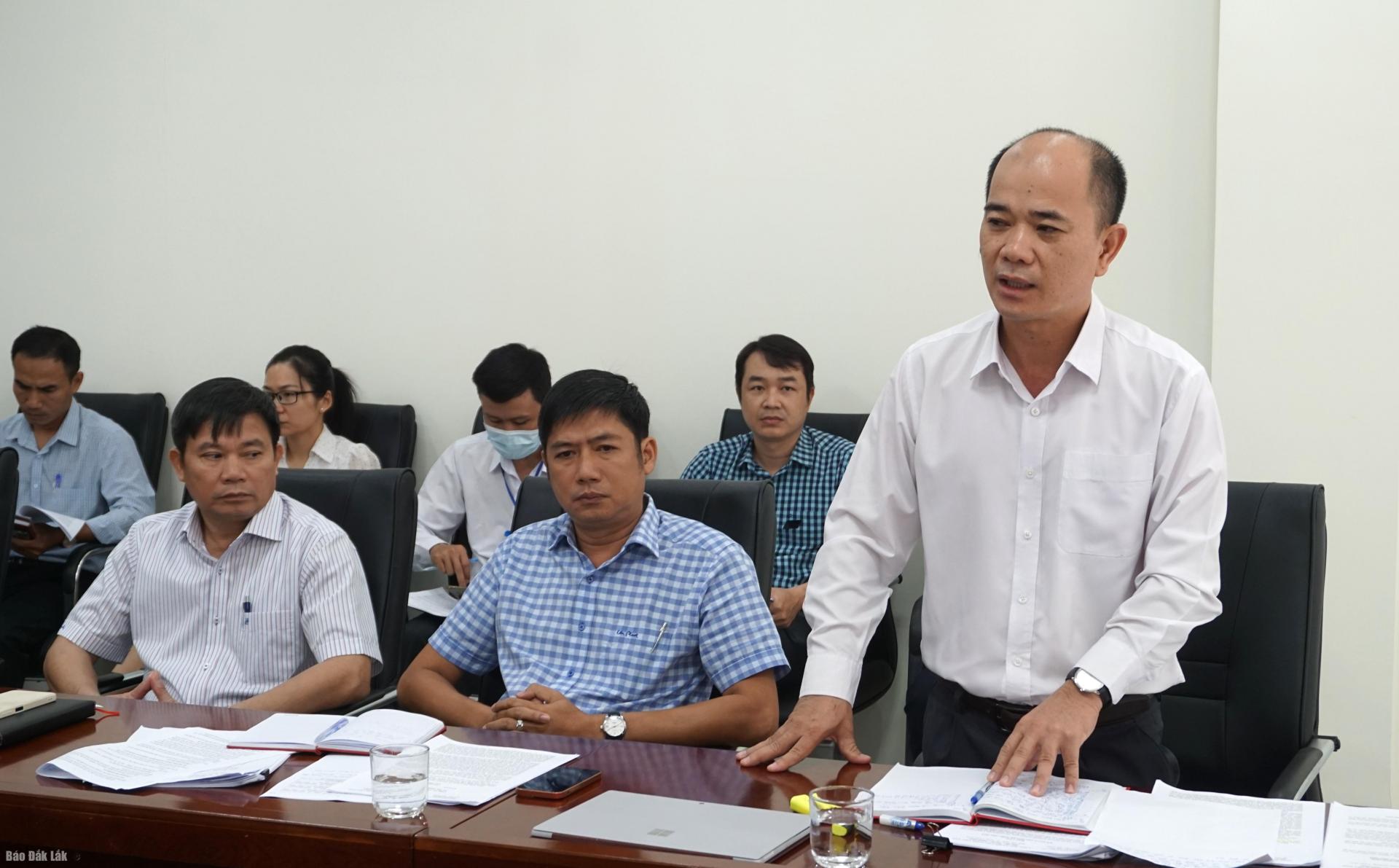 Phó Giám đốc Sở Xây dựng Trần Hồng Vinh báo cáo về công tác cải cách thủ tục hành chính của đơn vị.
