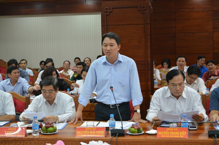Tham dự buổi làm việc với đoàn công tác có Phó Chủ tịch HĐND tỉnh Nguyễn Thanh Hiệp; Phó trưởng Đoàn Đại biểu Quốc hội tỉnh Y Khút Niê; Phó Chủ tịch Thường trực UBND tỉnh Nguyễn Hải Ninh, đại diện các Sở, ngành, địa phương liên quan.