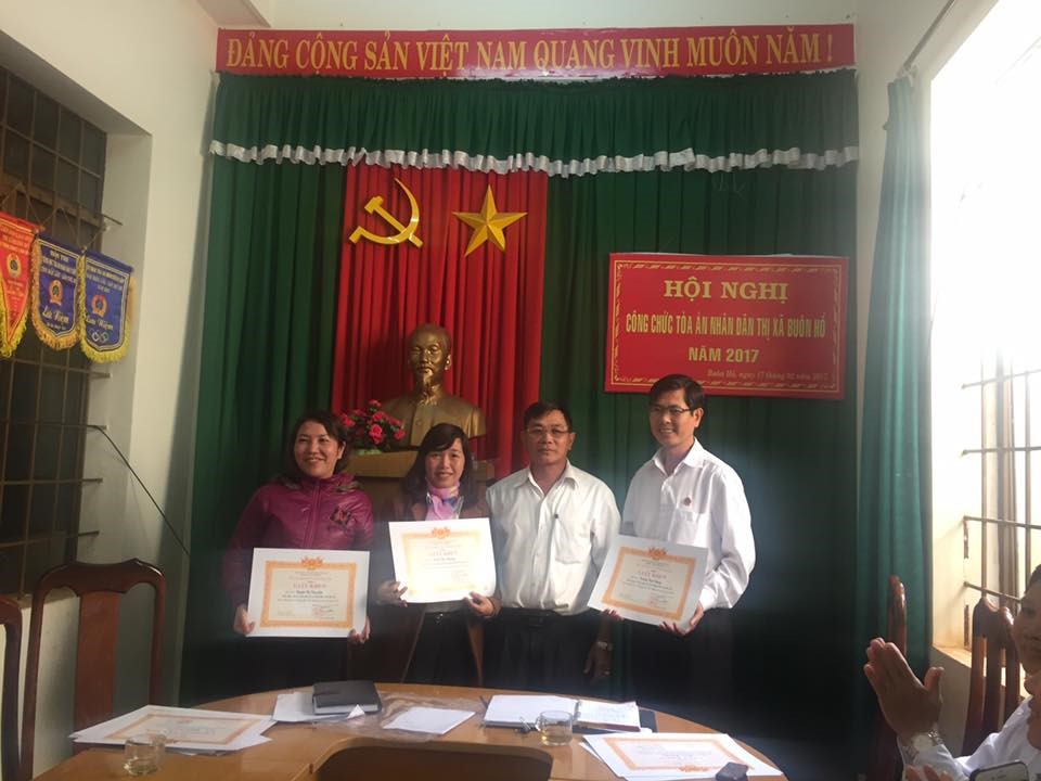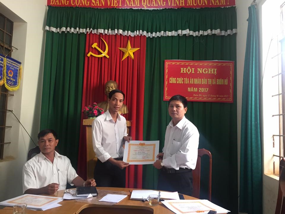 Tại hội nghị lãnh đạo TAND thị xã Buôn Hồ đã khen tặng các đ/c có thành tích xuất sắc trong công tác năm 2016.
