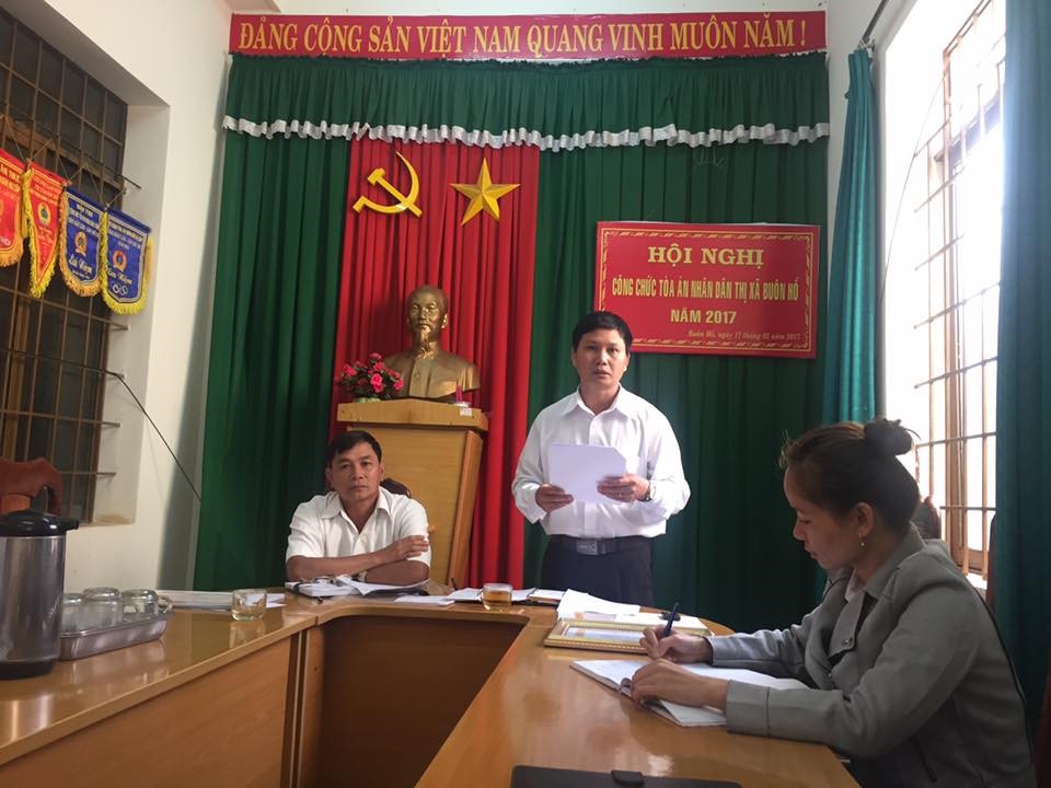 Hội nghị cán bộ, công chức và người lao động năm 2017 của Tòa án nhân dân thị xã Buôn Hồ đã thành công tốt đẹp. Với tinh thần trách nhiệm và quyết tâm cán bộ công chức người lao động trong đơn vị phấn đấu đoàn kết, trách nhiệm thực hiện thắng lợi các chỉ tiêu, nhiệm vụ năm 2017 đã đề ra.