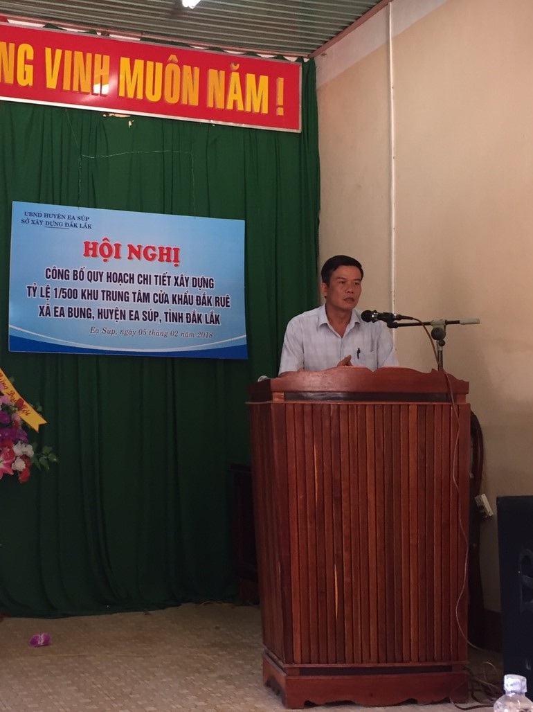 Hội nghị đã nghe ông Y Sáo Byă, Phó Giám đốc Sở Xây dựng công bố Quyết định số 43/QĐ-UBND ngày 05/01/2018 của UBND tỉnh Đắk Lắk về việc phê duyệt quy hoạch chi tiết xây dựng Khu trung tâm cửa khẩu Đắk Ruê, xã Ea Bung, huyện Ea Súp, tỉnh Đắk Lắk.