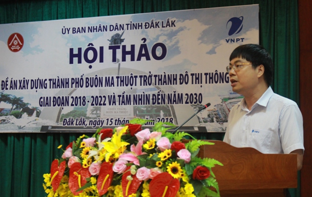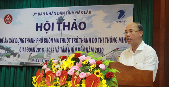 Sáng 15/5, UBND tỉnh tổ chức Hội thảo Đề án xây dựng thành phố Buôn Ma Thuột trở thành đô thị thông minh giai đoạn 2018 - 2022 và tầm nhìn đến năm 2030. Dự Hội nghị có UVTW Đảng, Phó Bí Thư Tỉnh ủy Trần Quốc Cường, Phó Chủ tịch HĐND tỉnh Nguyễn Thanh Hiệp, Phó Chủ tịch UBND tỉnh Nguyễn Tuấn Hà, lãnh đạo Tập đoàn VNPT, Sở, ngành, UBND các huyện, thị xã, thành phố trong tỉnh và các doanh nghiệp.