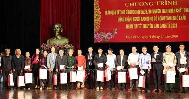Năm 2019, tỉnh Vĩnh Phúc đã đạt nhiều kết quả quan trọng và toàn diện trên tất cả các lĩnh vực, với 13/13 chỉ tiêu kinh tế - xã hội đạt và vượt kế hoạch đề ra. Cùng với việc thực hiện các nhiệm vụ phát triển kinh tế - xã hội, tỉnh dành nhiều sự quan tâm đến người nghèo và đối tượng chính sách. Trong dịp Tết Nguyên đán 2020, tỉnh đã quyết định nâng mức quà tặng đối với các đối tượng chính sách, người có công, hỗ trợ Tết cho 100% hộ nghèo và các nhóm đối tượng có hoàn cảnh khó khăn, với tổng kinh phí trên 38,9 tỷ đồng. Tỉnh còn tổ chức thăm hỏi, tặng quà cho trên 36.300 đối tượng người có công; hỗ trợ Tết cho gần 5.000 hộ nghèo trên địa bàn tỉnh...