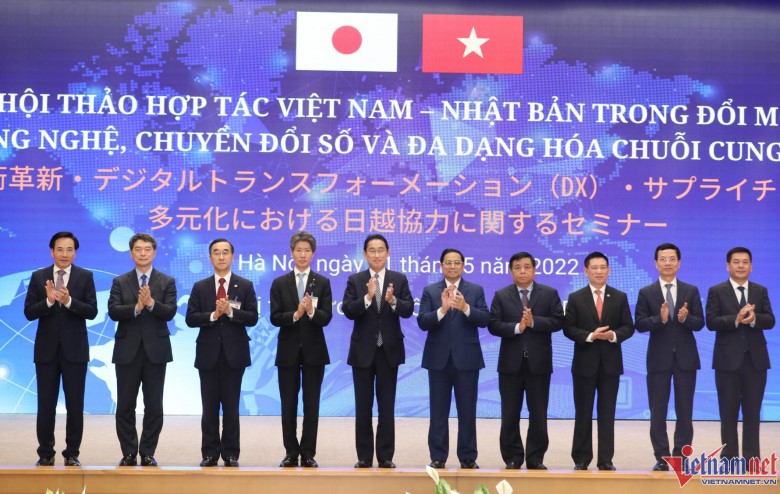 Phát biểu tại hội thảo, Thủ tướng Nhật Bản Kishida Fumio nhắc lại chuyến thăm của Thủ tướng Phạm Minh Chính tới Nhật Bản vào tháng 11/2021, hai bên đã khởi động 3 sáng kiến về hợp tác đổi mới công nghệ, công nghiệp, chuyển đổi số và đa dạng hóa chuỗi cung ứng Nhật Bản - Việt Nam. Kể từ đó, hai bên đã hợp tác chặt chẽ hơn trên các lĩnh vực này.