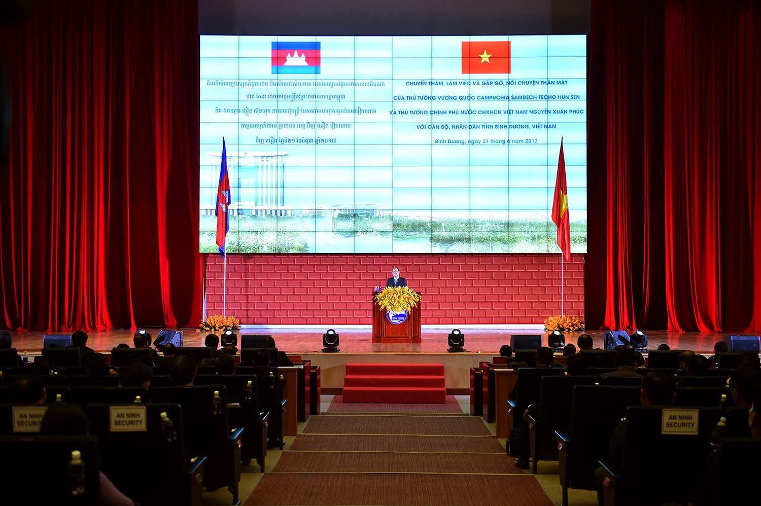 Hai Thủ tướng đã gặp gỡ và nói chuyện với đại diện chính quyền và các tầng lớp nhân dân tỉnh Bình Dương, trong đó có nhiều đại diện thế hệ trẻ là học sinh, sinh viên Việt Nam và sinh viên Campuchia đang học tập tại Việt Nam cũng như đại biểu các thế hệ bộ đội tình nguyện, chuyên gia Việt Nam đã từng sang giúp đỡ Campuchia.