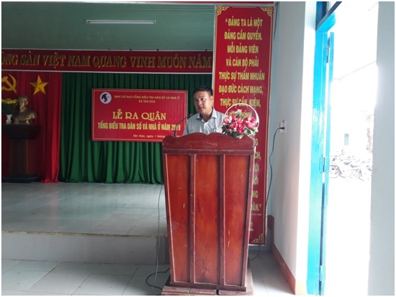 Được sự phân công của đồng chí Nguyễn Tuấn Hà - Phó Chủ tịch UBND tỉnh Đắk Lắk - Trưởng Ban Chỉ đạo Tổng điều tra dân số và nhà ở tỉnh. Sáng ngày 01/4/2019, đồng chí Phạm Văn Lập – Phó Giám đốc Sở Xây dựng – Thành viên Ban chỉ đạo và đồng chí Lê Văn Tĩnh- Trưởng phòng Quản lý Nhà và Thị trường Bất động sản - Thành viên Văn phòng Ban chỉ đạo đã tham dự và phát biểu tại Lễ ra quân Tổng điều tra dân số và nhà ở tại xã Tân Hòa, huyện Buôn Đôn, tỉnh Đắk Lắk.