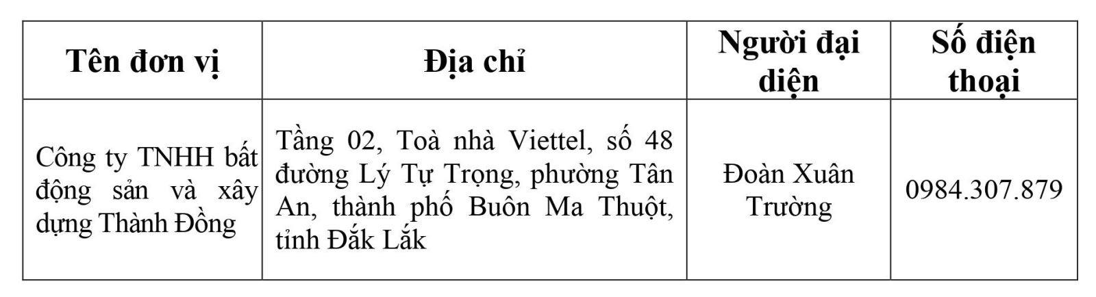 Sở Xây dựng thông báo theo nội dung trên để Công ty TNHH bất động sản và xây dựng Thành Đồng triển khai hoạt động theo quy định