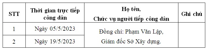 Thông báo lịch tiếp công dân Định kỳ tháng 5 năm 2023 của Lãnh đạo Sở Xây dựng tỉnh Đắk Lắk.