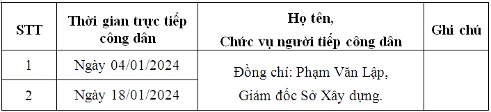 Thông báo lịch trực tiếp công dân tháng 01/2024 của Sở Xây dựng