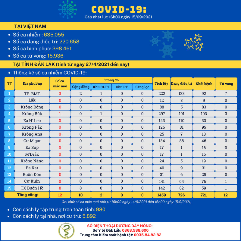 Thông cáo Báo Chí số 70 về việc ghi nhận trường hợp mắc Covid-19 thứ 1448 đến 1459 và các trường hợp bệnh nhân Covid-19 được xuất viện trên địa bàn tỉnh Đắk Lắk