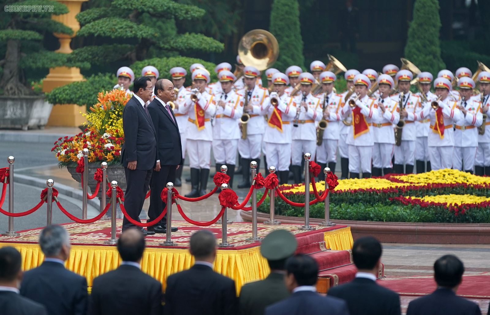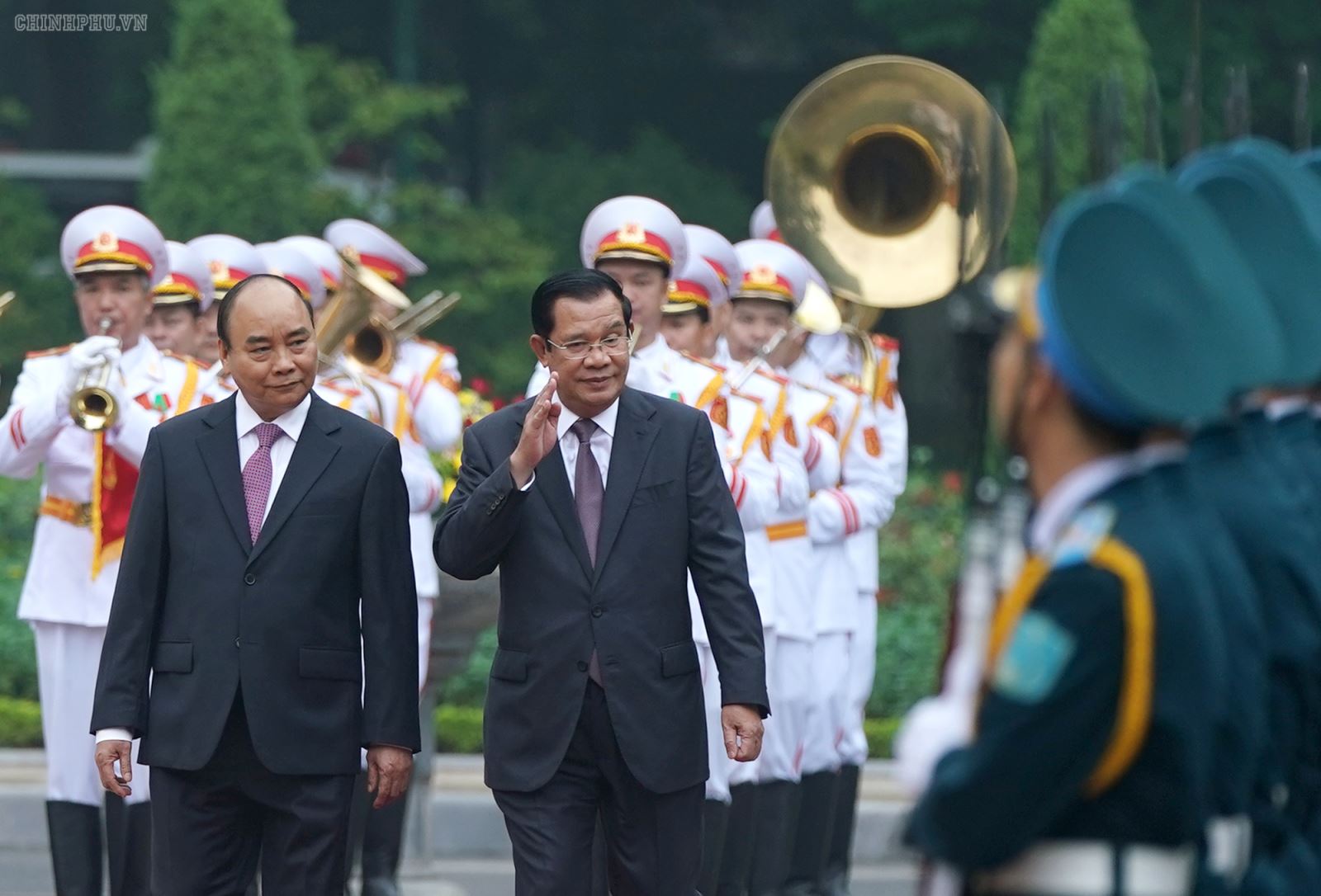 Lễ đón Thủ tướng Campuchia được tổ chức trọng thể tại Phủ Chủ tịch. Ảnh VGP/Quang Hiếu