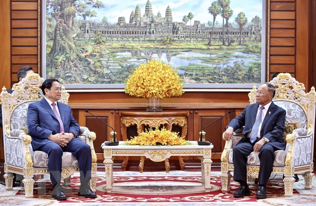 Trước đó, vào chiều 8/11, tại trụ sở Quốc hội Campuchia, Thủ tướng Chính phủ Phạm Minh Chính đã hội kiến với Chủ tịch Quốc hội Campuchia Samdech Heng Samrin.