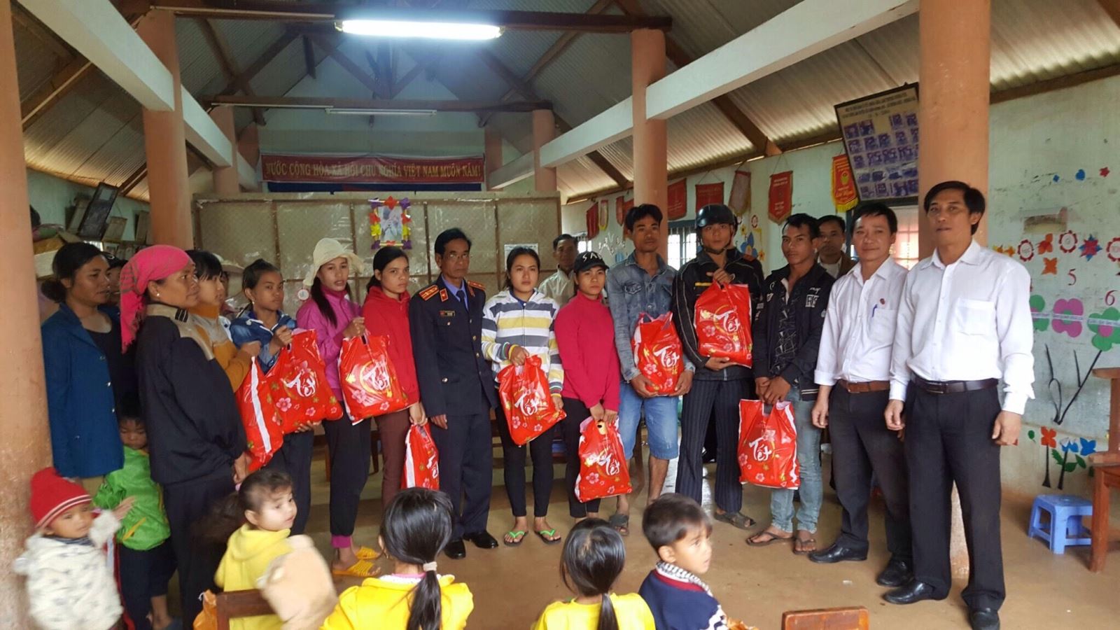hai đơn vị kết nghĩa chúc tết và trao quà cho bà con trong buôn Kđoh