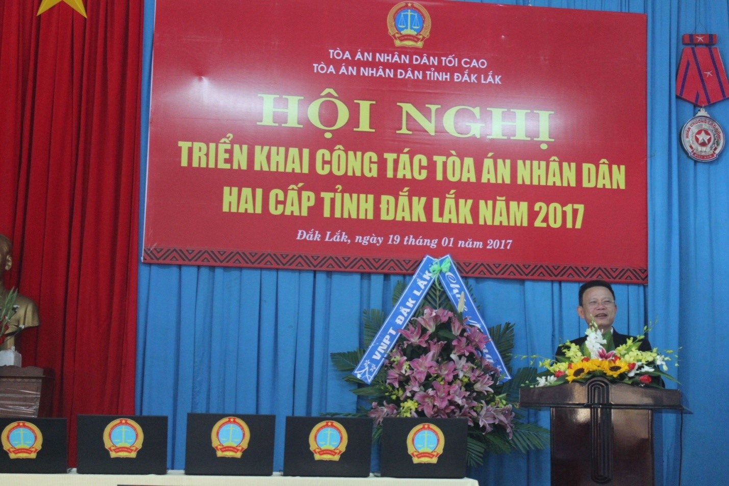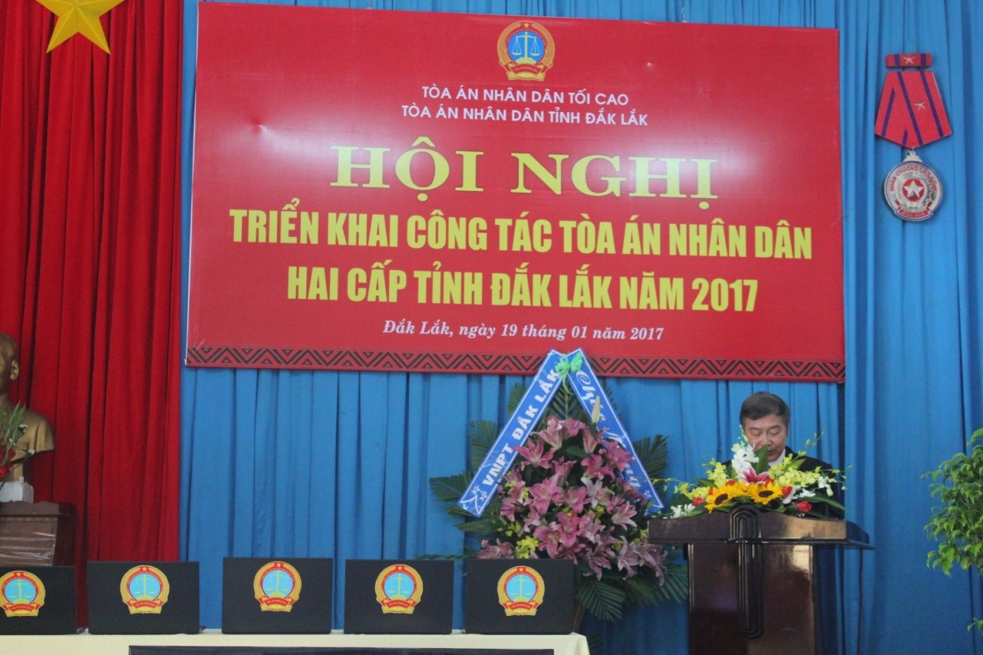 Được sự đồng ý của Tòa án nhân dân tối cao và Thường trực Tỉnh ủy, ngày 19/01/2017, Tòa án nhân dân tỉnh Đắk Lắk tổ chức “Hội nghị triển khai công tác Tòa án nhân dân hai cấp tỉnh Đắk Lắk năm 2017” để đánh giá kết quả công tác của Tòa án hai cấp năm 2016 và triển khai các nhiệm vụ công tác năm 2017.
