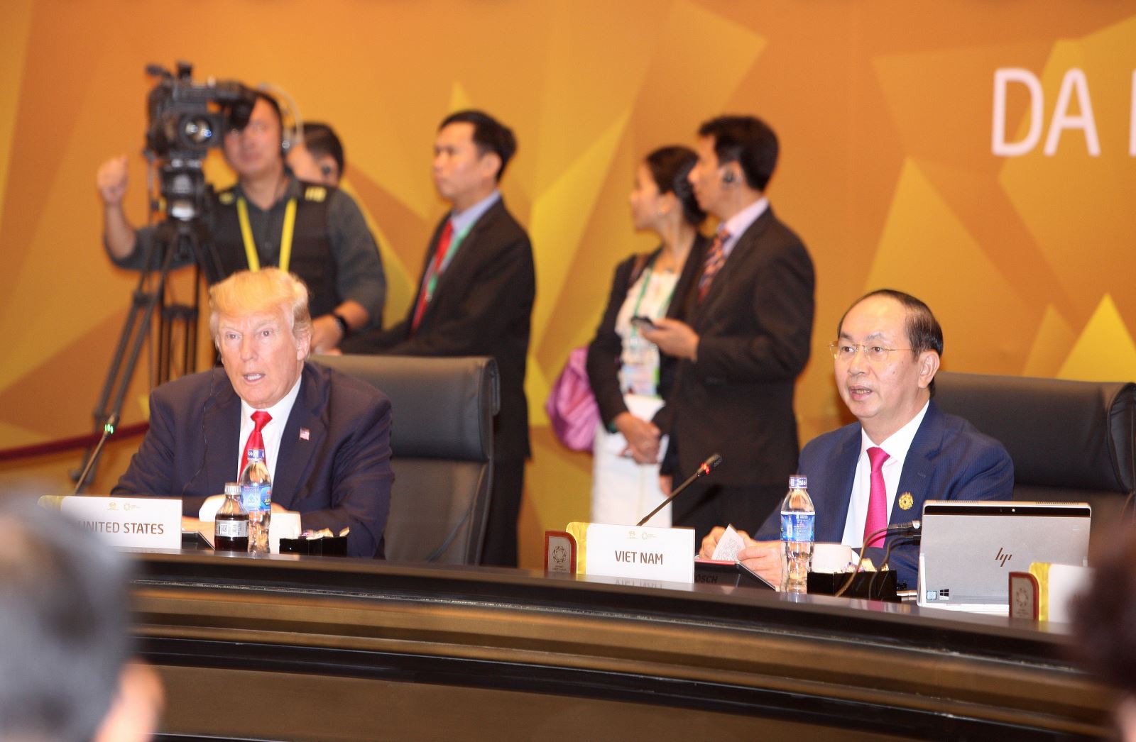Chủ tịch nước Trần Đại Quang và Tổng thống Hoa Kỳ Donald Trump tham dự phiên họp.