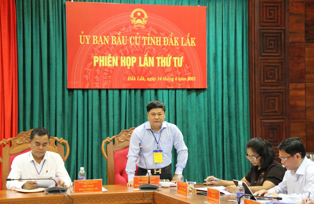 Phát biểu kết luận phiên họp, đồng chí Y Biêr Niê - Phó Bí thư Tỉnh ủy, Chủ tịch HĐND tỉnh, Chủ tịch Ủy ban Bầu cử tỉnh nhấn mạnh: Công tác chuẩn bị cho cuộc bầu cử đại biểu Quốc hội khóa XV và đại biểu HĐND các cấp nhiệm kỳ 2021 – 2026 trên địa bàn tỉnh đến nay đã thực hiện các bước, quy trình theo đúng pháp luật, đảm bảo đúng tiến độ. Trong thời gian tới đề nghị Ban bầu cử các cấp tiếp tục thực hiện đôn đốc, kiểm tra, giám sát nắm tình hình công tác chuẩn bị bầu cử ở cơ sở. Chuẩn bị cơ sở vật chất, kinh phí, con dấu bầu cử, in tài liệu phát cho các tổ chức bầu cử, niêm yết danh sách cử tri theo quy định. Chuẩn bị tốt các điều kiện chuẩn bị Hội nghị hiệp thương lần thứ ba để lựa chọn, lập danh sách những người đủ tiêu chuẩn ứng cử đại biểu Quốc hội khóa XV và đại biểu HĐND các cấp nhiệm kỳ 2021 – 2026. Thực hiện tốt công tác thông tin tuyên truyền để người dân hiểu mục đích, ý nghĩa, quyền lợi, nghĩa vụ và trách nhiệm của mình trong công tác bầu cử; chuẩn bị đầy đủ về cơ sở vật chất và bảo đảm an ninh trật tự trên địa bàn phục vụ công tác bầu cử…