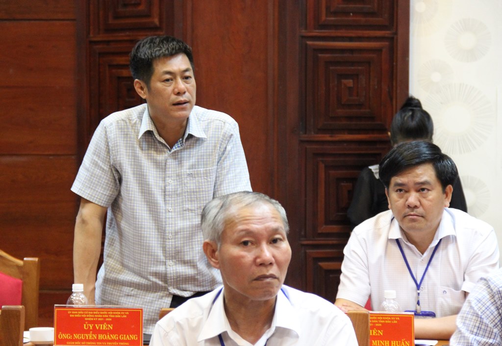 Giám đốc Sở Thông tin và Truyền thông Nguyễn Hoàng Giang báo cáo các nội dung liên quan đến công tác tuyên truyền về cuộc bầu cử.